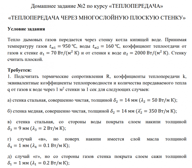 Для студентов МГТУ им. Н.Э.Баумана по предмету ТермодинамикаВариант 7 - ДЗ №2 - Теплопередача через многослойную плоскую стенкуВариант 7 - ДЗ №2 - Теплопередача через многослойную плоскую стенку