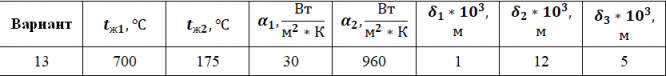 Домашнее задание №2 Вариант №13 "Теплопередача через многослойную плоскую стенку".