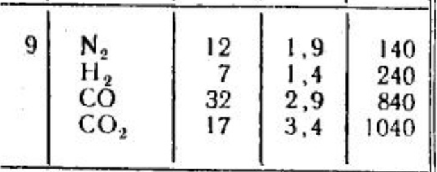 Сосуд разделён адиабатной перегородкой на четыре части, в каждой из которых содержится различные газов. После того как перегородка убрана, происходит так называемое «смешение в объеме» без теплообмена с окружающей средой. Состояние газов до смешения характеризуется следующими параметрами...