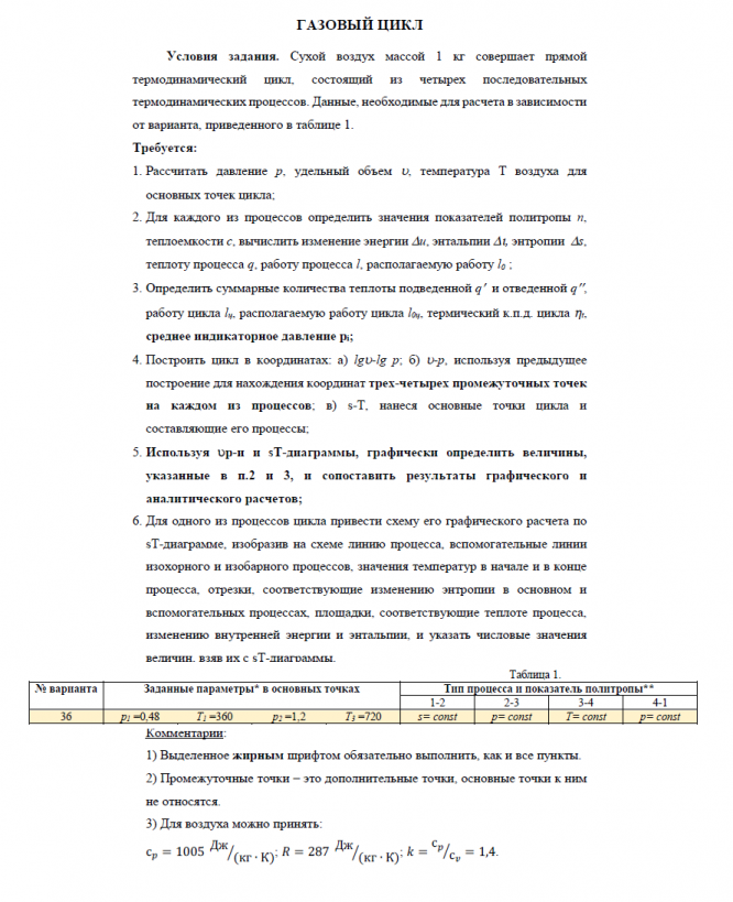 ДЗ 1: Вариант №36 - ДЗ - Газовый цикл вариант 36