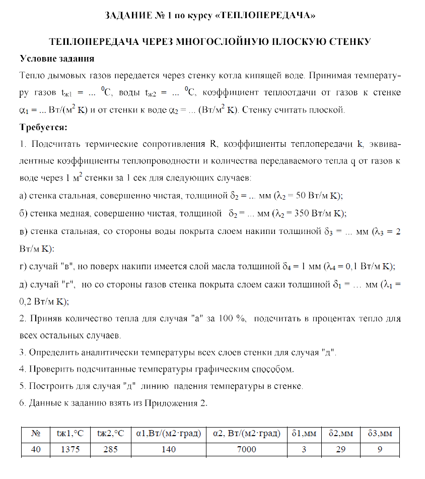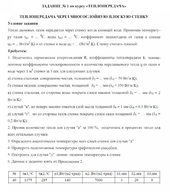 Для студентов МГТУ им. Н.Э.Баумана по предмету ТермодинамикаВариант №40 - ДЗ - Теплопередача через многослойную плоскую стенкуВариант №40 - ДЗ - Теплопередача через многослойную плоскую стенку