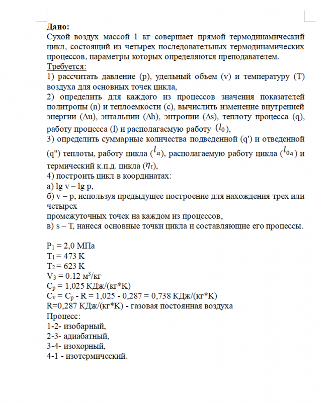 ДЗ 1: Газовый цикл, вариант 10