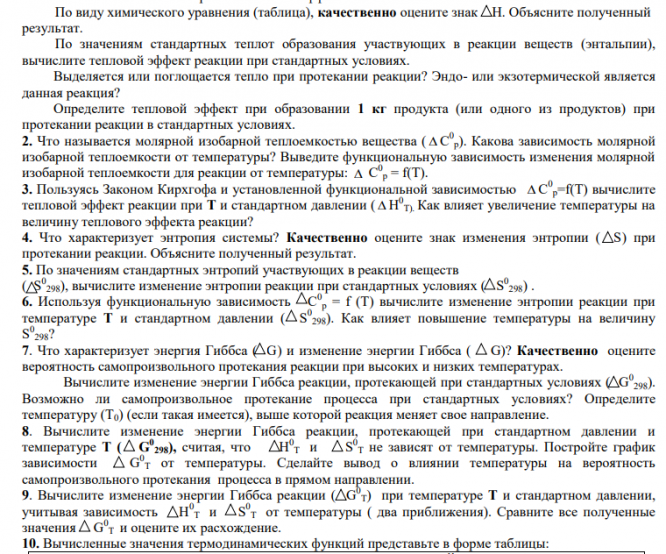 10. Вычисленные значения термодинамических функций представьте в форме таблицы: