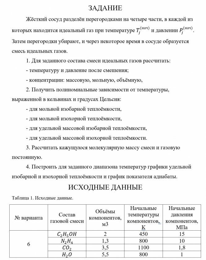 ДЗ 1: Вариант 6 - ДЗ №1 - Расчёт процессов смешения идеальных газов вариант 6