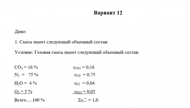 ДЗ 1: ДЗ№1 Вариант 12- ГАЗОВЫЕ СМЕСИ И ТЕПЛОЕМКОСТИ принято Мамышевым вариант 12