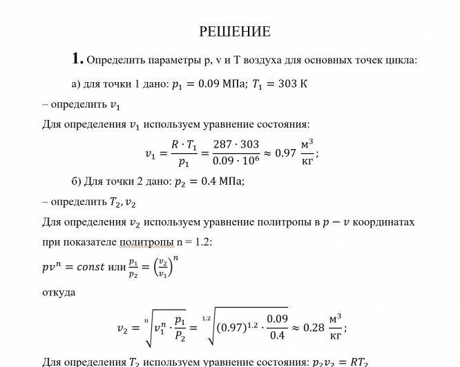 1) рассчитать давление (p), удельный объем (v) и температуру (T) воздуха для основных точек цикла,
