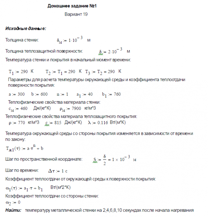ДЗ 2: ДЗ№1 Вариант 19 Нагрев металлической стенки вариант 19