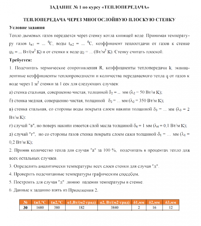 ДЗ 2: "Теплопередача через многослойную плоскую стенку" вариант 30