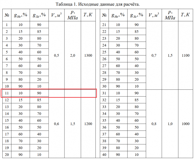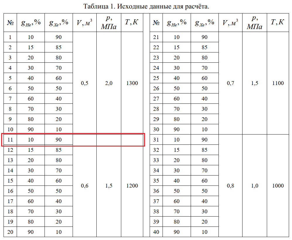 ДЗ 1: Газовые смеси и теплоёмкости вариант 11