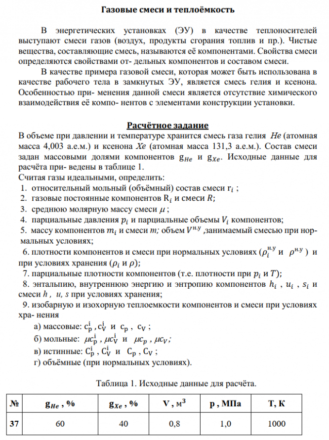 ДЗ 1: Газовые смеси и теплоёмкости вариант 37