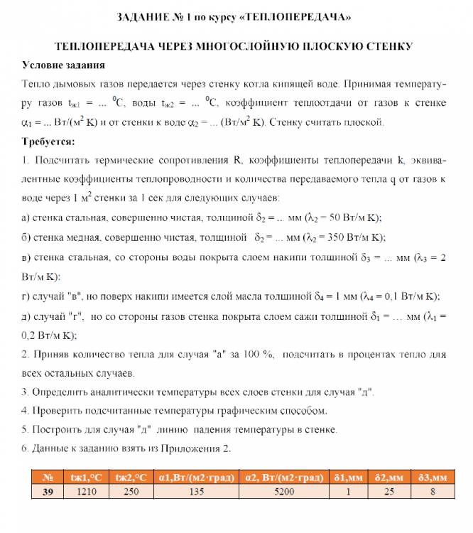 ДЗ 2: Теплопередача через многослойную плоскую стенку вариант 39