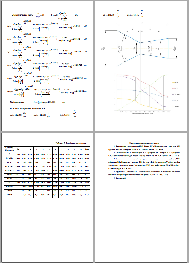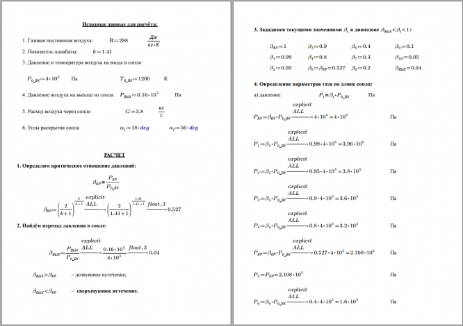 Условие задания Дано: 1. Газовая постоянная воздуха R = 288 Дж/(кг К), показатель адиабаты k = 1,41. 2. Давление и температура воздуха на входе в сопло Р 0* , Т 0* . 3. Давление воздуха на выходе из сопла Р вых . 4. Расход воздуха через сопло G. 5. Углы раскрытия сопла α 1 и α 2 (см. рис. 1). Значения величин, указанных в п. 2...5 взять из Приложения 1 по номеру варианта..
