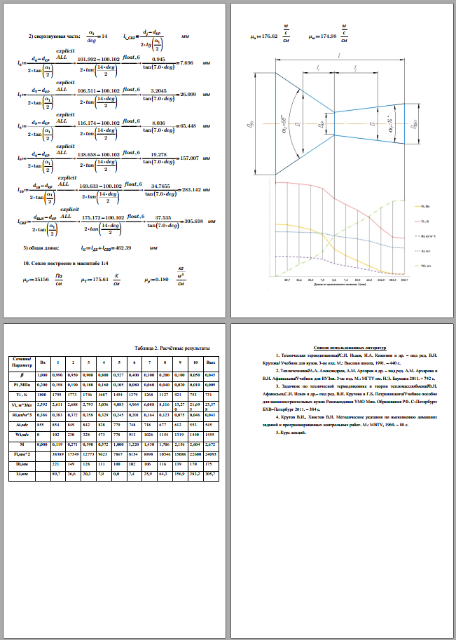 Условие задания Дано: 1. Газовая постоянная воздуха R = 288 Дж/(кг К), показатель адиабаты k = 1,41. 2. Давление и температура воздуха на входе в сопло Р 0* , Т 0* . 3. Давление воздуха на выходе из сопла Р вых . 4. Расход воздуха через сопло G. 5. Углы раскрытия сопла α 1 и α 2 (см. рис. 1). Значения величин, указанных в п. 2...5 взять из Приложения 1 по номеру варианта..