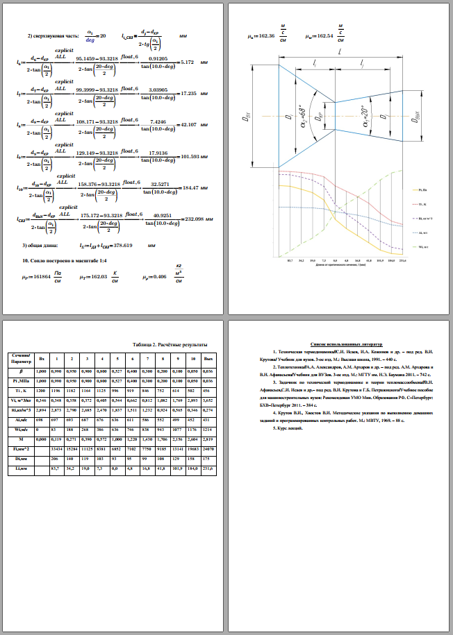 Условие задания Дано: 1. Газовая постоянная воздуха R = 288 Дж/(кг К), показатель адиабаты k = 1,41. 2. Давление и температура воздуха на входе в сопло Р 0* , Т 0* . 3. Давление воздуха на выходе из сопла Р вых . 4. Расход воздуха через сопло G. 5. Углы раскрытия сопла α 1 и α 2 (см. рис. 1). Значения величин, указанных в п. 2...5 взять из Приложения 1 по номеру варианта..