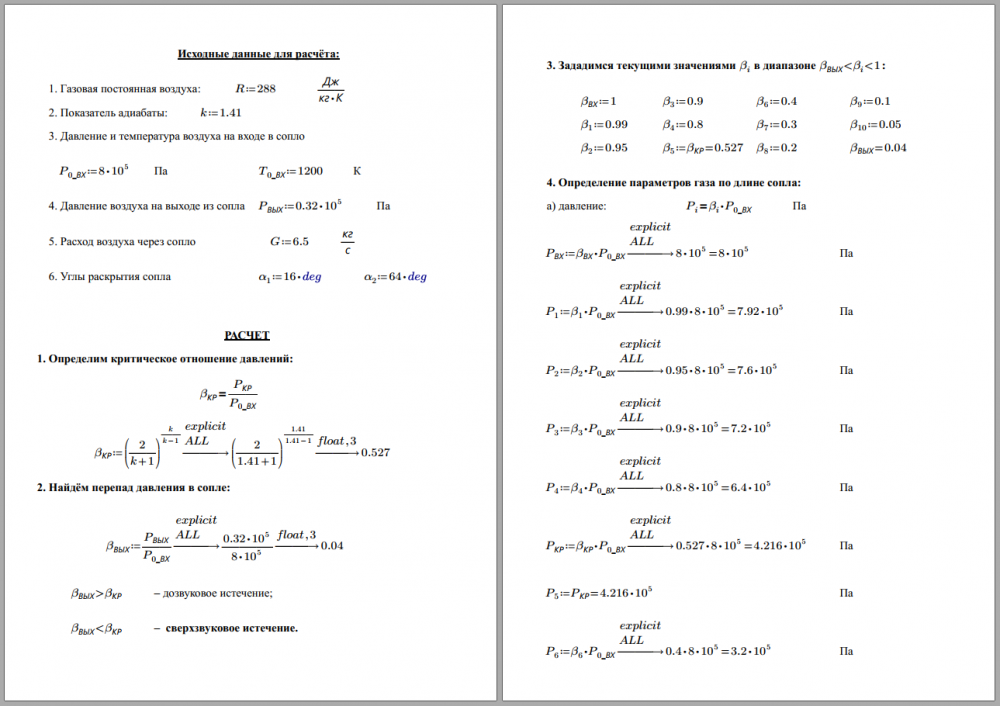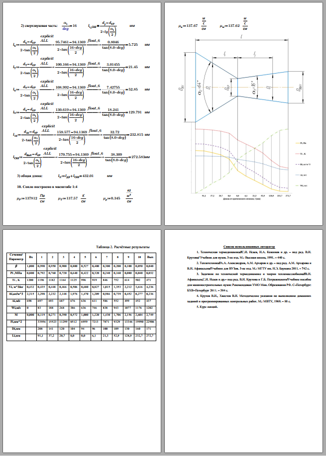 Условие задания Дано: 1. Газовая постоянная воздуха R = 288 Дж/(кг К), показатель адиабаты k = 1,41. 2. Давление и температура воздуха на входе в сопло Р 0* , Т 0* . 3. Давление воздуха на выходе из сопла Р вых . 4. Расход воздуха через сопло G. 5. Углы раскрытия сопла α 1 и α 2 (см. рис. 1). Значения величин, указанных в п. 2...5 взять из Приложения 1 по номеру варианта..