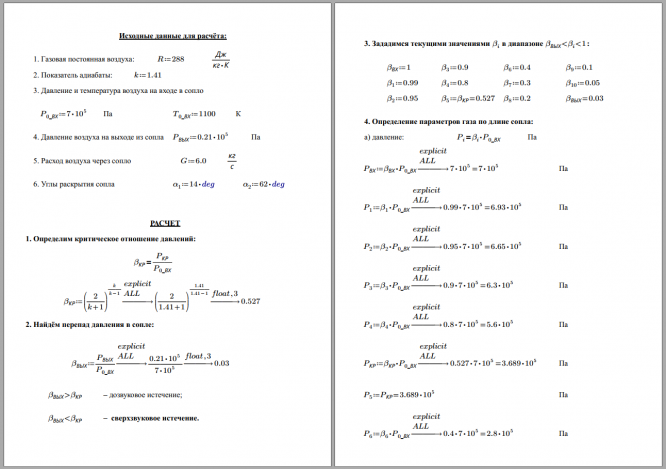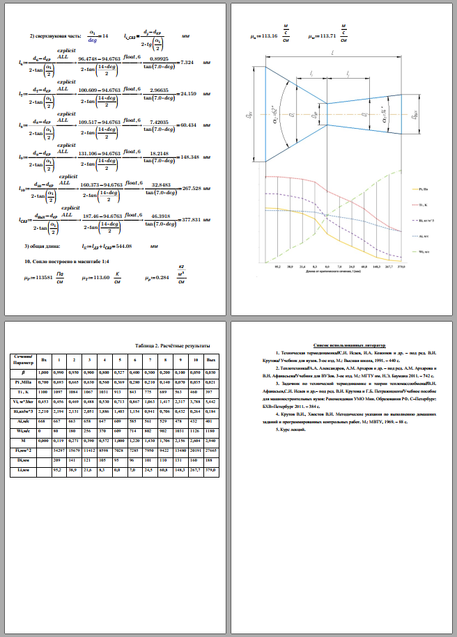 Условие задания Дано: 1. Газовая постоянная воздуха R = 288 Дж/(кг К), показатель адиабаты k = 1,41. 2. Давление и температура воздуха на входе в сопло Р 0* , Т 0* . 3. Давление воздуха на выходе из сопла Р вых . 4. Расход воздуха через сопло G. 5. Углы раскрытия сопла α 1 и α 2 (см. рис. 1). Значения величин, указанных в п. 2...5 взять из Приложения 1 по номеру варианта..