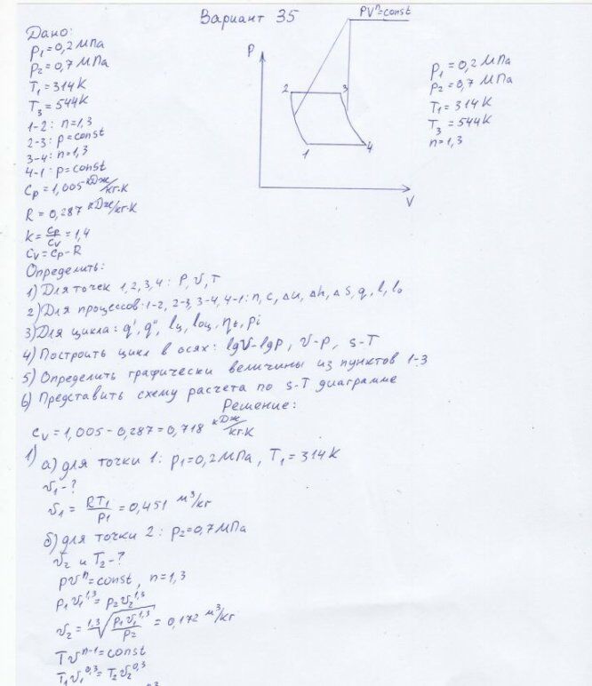 Вариант 35 - ДЗ №1 - Термодинамический анализ газового цикла