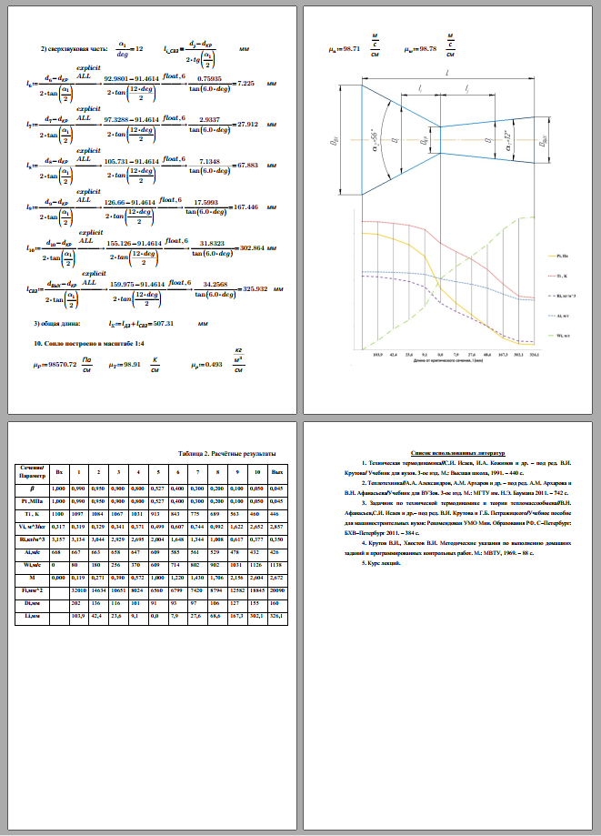 Условие задания Дано: 1. Газовая постоянная воздуха R = 288 Дж/(кг К), показатель адиабаты k = 1,41. 2. Давление и температура воздуха на входе в сопло Р 0* , Т 0* . 3. Давление воздуха на выходе из сопла Р вых . 4. Расход воздуха через сопло G. 5. Углы раскрытия сопла α 1 и α 2 (см. рис. 1). Значения величин, указанных в п. 2...5 взять из Приложения 1 по номеру варианта..