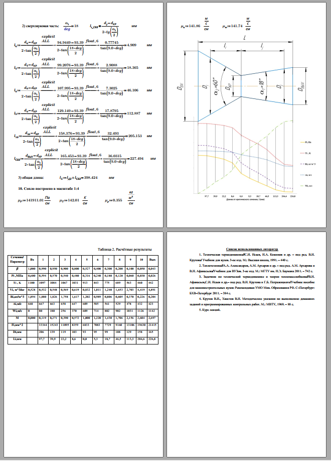 Условие задания Дано: 1. Газовая постоянная воздуха R = 288 Дж/(кг К), показатель адиабаты k = 1,41. 2. Давление и температура воздуха на входе в сопло Р 0* , Т 0* . 3. Давление воздуха на выходе из сопла Р вых . 4. Расход воздуха через сопло G. 5. Углы раскрытия сопла α 1 и α 2 (см. рис. 1). Значения величин, указанных в п. 2...5 взять из Приложения 1 по номеру варианта..