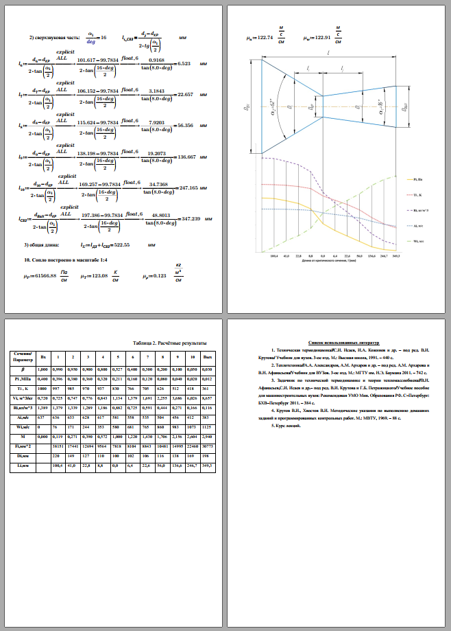 Условие задания Дано: 1. Газовая постоянная воздуха R = 288 Дж/(кг К), показатель адиабаты k = 1,41. 2. Давление и температура воздуха на входе в сопло Р 0* , Т 0* . 3. Давление воздуха на выходе из сопла Р вых . 4. Расход воздуха через сопло G. 5. Углы раскрытия сопла α 1 и α 2 (см. рис. 1). Значения величин, указанных в п. 2...5 взять из Приложения 1 по номеру варианта..