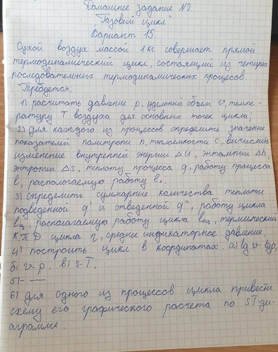Для студентов МГТУ им. Н.Э.Баумана по предмету ТермодинамикаВариант 15 - ДЗ №2 - "Газовый цикл"Вариант 15 - ДЗ №2 - "Газовый цикл"