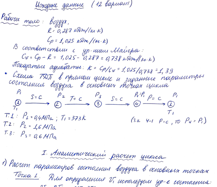 Зачтенный типовой расчет по термодинамике "Газовый цикл", вариант 12