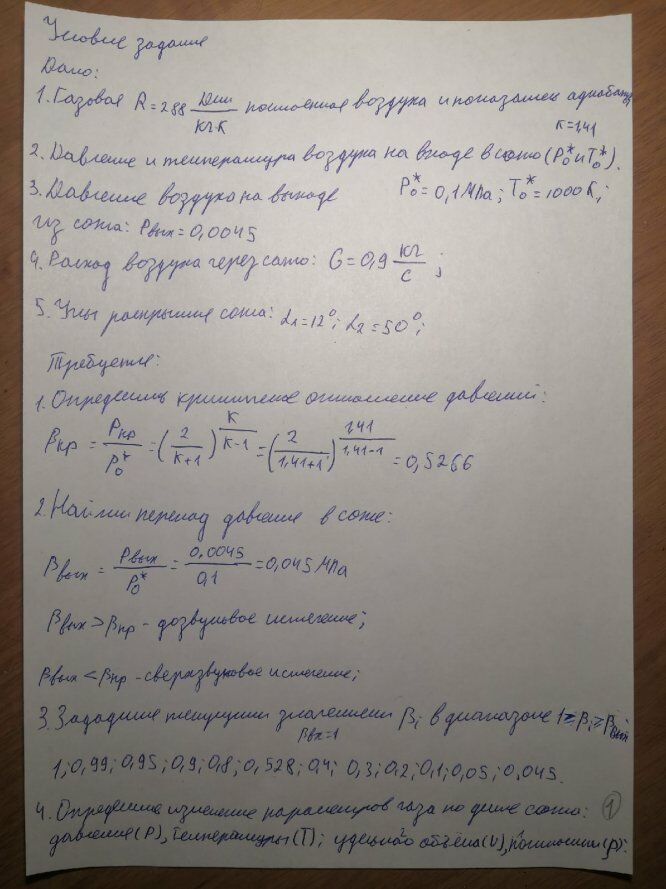 Для студентов МГТУ им. Н.Э.Баумана по предмету ТермодинамикаИстечение газов по каналам переменного сечения ДЗ №3. Вариант №1Истечение газов по каналам переменного сечения ДЗ №3. Вариант №1