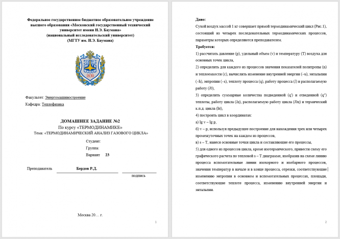 ДЗ 2: Вариант №23 - Термодинамический анализ газового цикла вариант 23