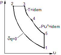 1. Параметры в характерных точках цикла Р,υ , T . 2. Средние массовые теплоемкости в процессах цикла. 3. Термодинамическую l и потенциальную работу w , теплоту q , изменение внутренней энергии , энтальпии и энтропии в процессах цикла, работу цикла ,термический к.п.д. цикла . 4. Построить цикл в координатах Р- V и Т - S . .