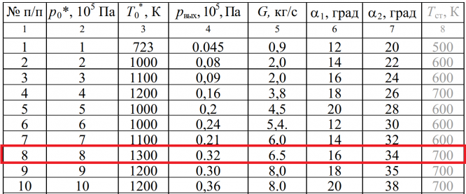 ДЗ 3: Термодинамический расчет сопла Лаваля вариант 8