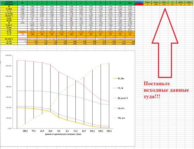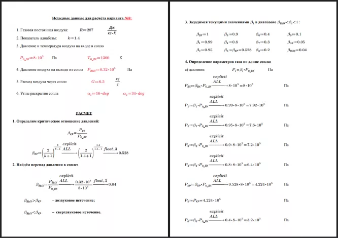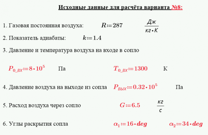 Главная » Учебные материалы » Термодинамика » Домашние задания » МГТУ им. Н.Э.Баумана » Несколько классов/семестров » Номер 3 » Термодинамический расчет сопла Лаваля (Выполнено в MathCAD Prime 3.1 и Excel - универсальное для всех вариантов)