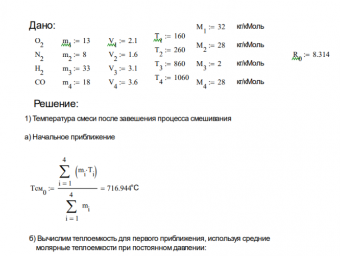 ДЗ №1 - Газовые смеси. Подробное решение, выполненное в маткаде.