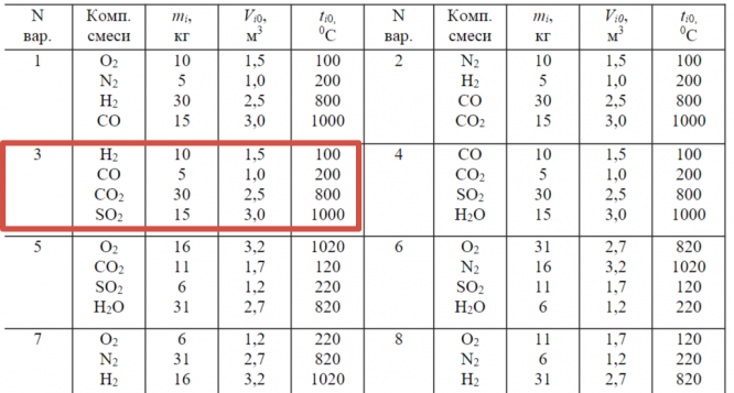 ДЗ 1: Газовые смеси вариант 3