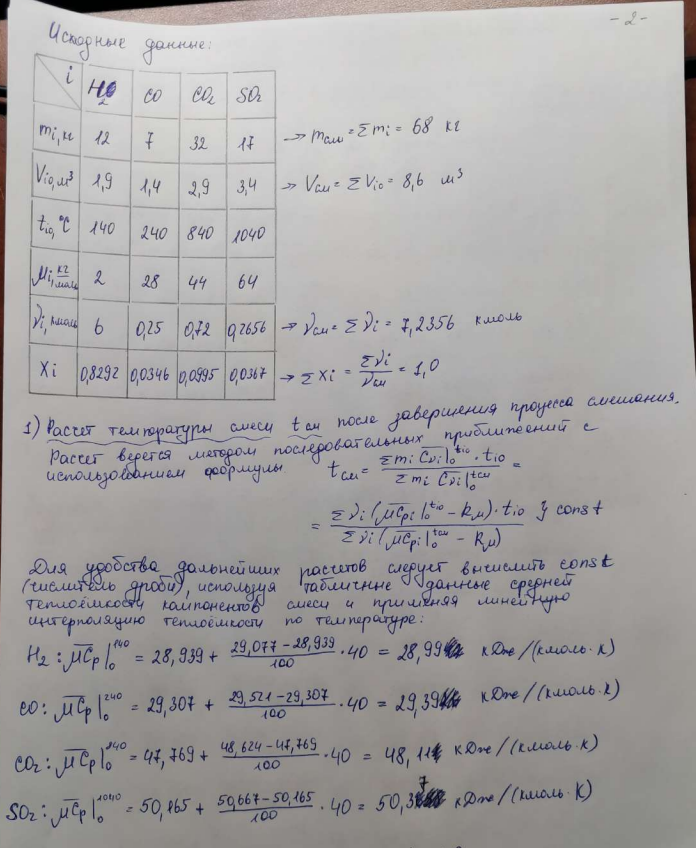 Домашнее задание 1 "Газовые смеси" 10 вариант. Зачтено Семенёвым П. А. Работа выполнена в соответствии с примером выполнения (см. файл).