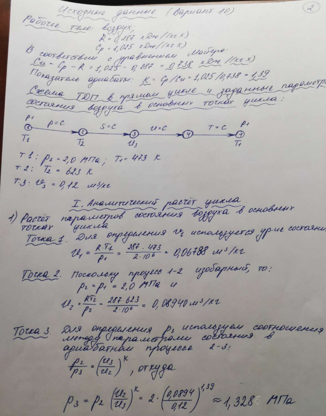 Домашнее задание 2 "Газовый цикл" вариант 10. Работа выполнена в соответствии с примером выполнения (см. файл).