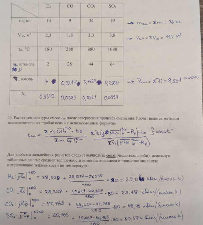 Домашнее задание 1 "Газовые смеси" 17 вариант. Зачтено Семенёвым П. А. Работа выполнена в соответствии с примером выполнения (см. файл).