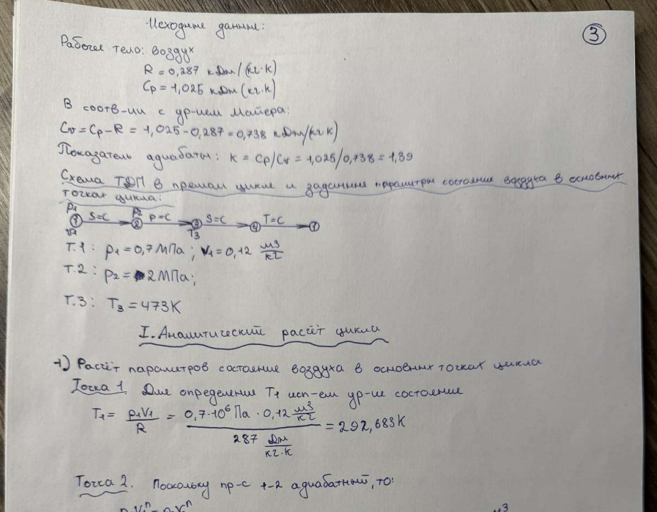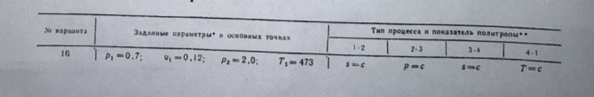 Домашнее задание 2 "Газовый цикл" вариант 16. Работа выполнена в соответствии с примером выполнения (см. файл).