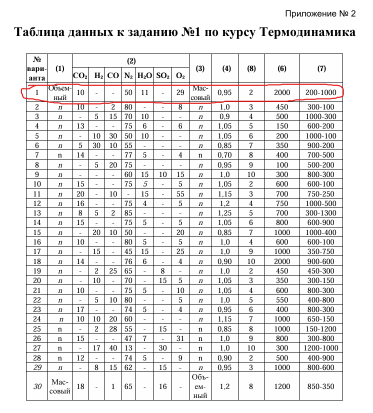 ДЗ 1: Газовые смеси и теплоемкости вариант 1