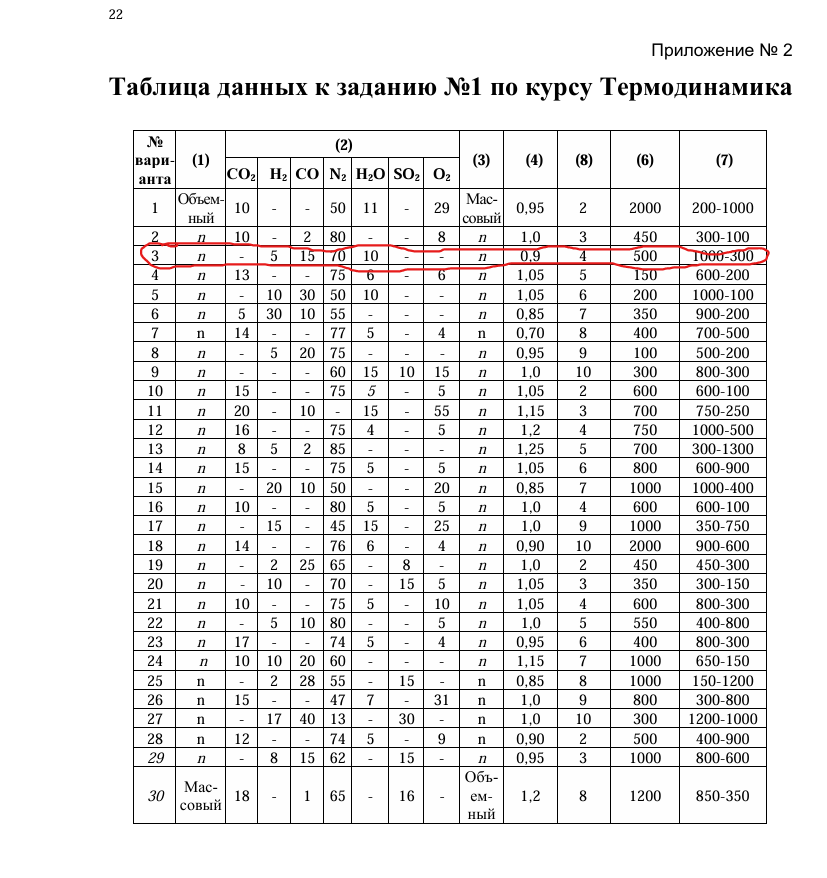 ДЗ 1: Газовые смеси и теплоемкости вариант 3