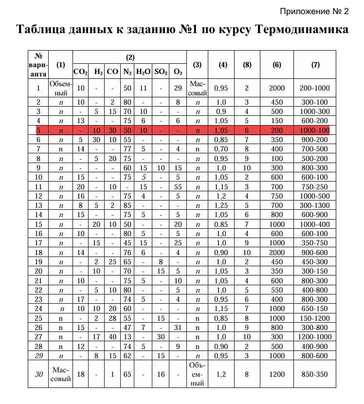 ДЗ 1: Газовые смеси и теплоемкости вариант 5