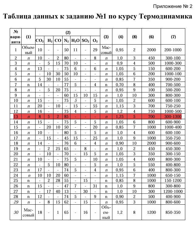 Домашнее задание №1 по термодинамике, выполнено по методическим указаниям Афанасьева В.Н., Недайвозова А.В. «ТЕРМОДИНАМИКА. ГАЗОВЫЕ СМЕСИ И ТЕПЛОЕМКОСТИ». Вариант 13. Приложен файл mathcad 15 и PDF. 😀