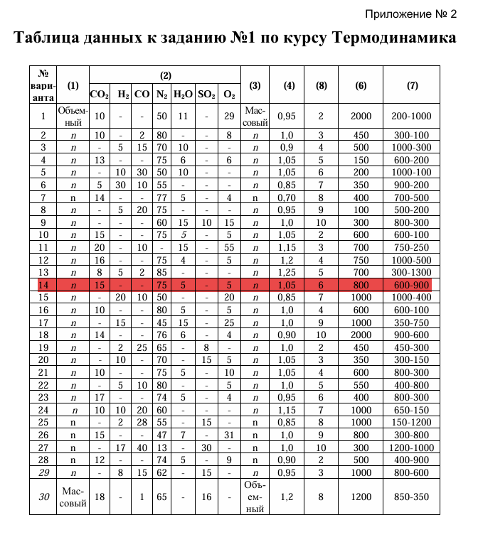Домашнее задание №1 по термодинамике, выполнено по методическим указаниям Афанасьева В.Н., Недайвозова А.В. «ТЕРМОДИНАМИКА. ГАЗОВЫЕ СМЕСИ И ТЕПЛОЕМКОСТИ». Вариант 14. Приложен файл mathcad 15 и PDF. 😀