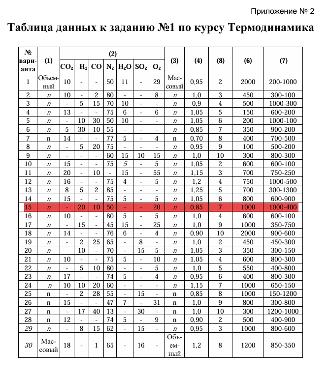 ДЗ 1: Газовые смеси и теплоемкости вариант 15