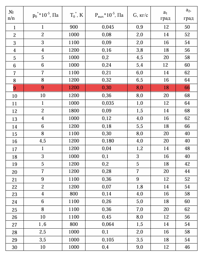 ДЗ 3: Истечение газов по каналам переменного сечения вариант 9