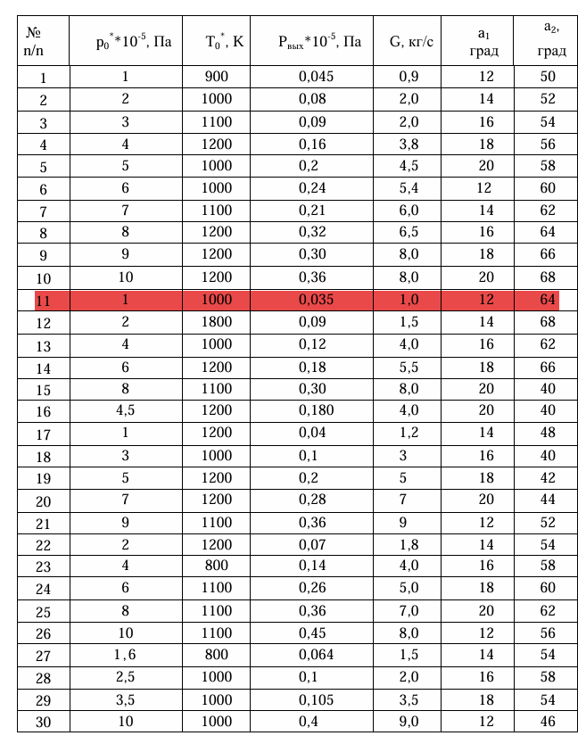 ДЗ 3: Истечение газов по каналам переменного сечения вариант 11