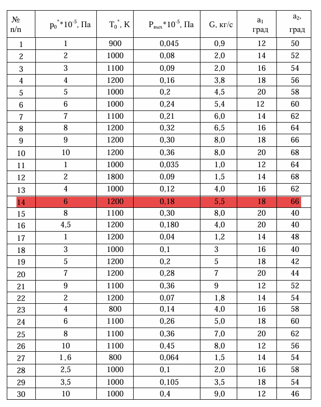 ДЗ 3: Истечение газов по каналам переменного сечения вариант 14