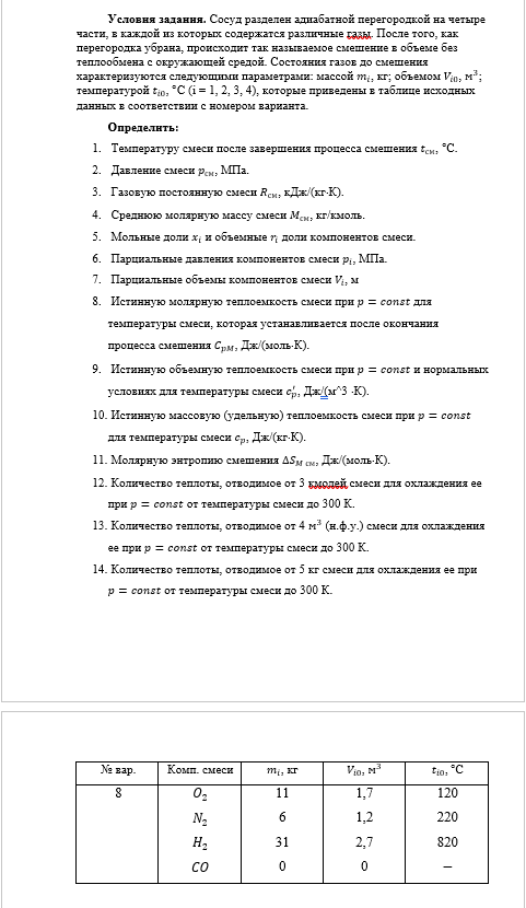 ДЗ 1: Газовые смеси вариант 8