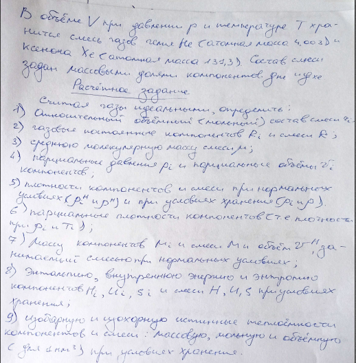 ДЗ 1: Расчёт параметров газовых смесей вариант 14