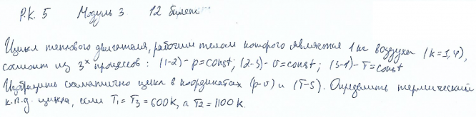 Для студентов МГТУ им. Н.Э.Баумана по предмету ТермодинамикаБилет 12, 5 РКБилет 12, 5 РК