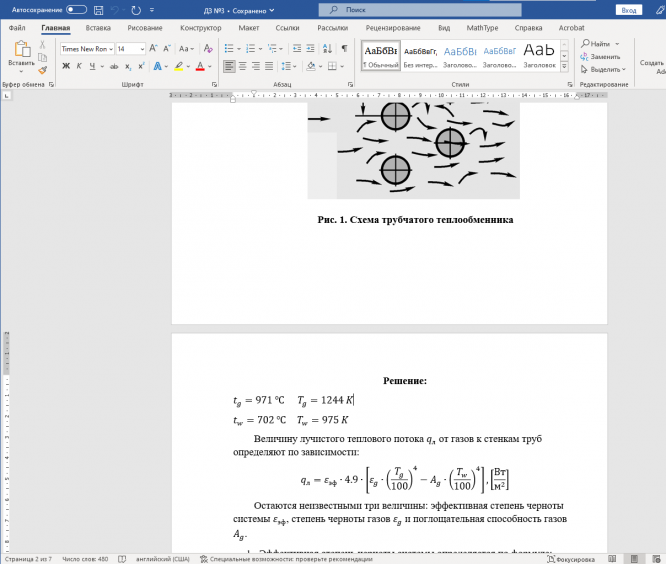 Тепловые потоки в трубчатом теплообменнике - 6 Вариант